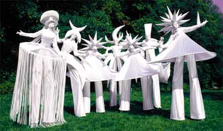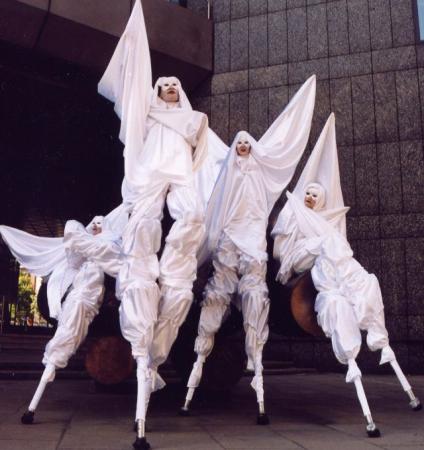 Gigantisch große Stelzenacts, waghalsige StelzenJumper, leblos erscheinende Skulpturen, geheimnisvolle Acts in luftiger Höhe.